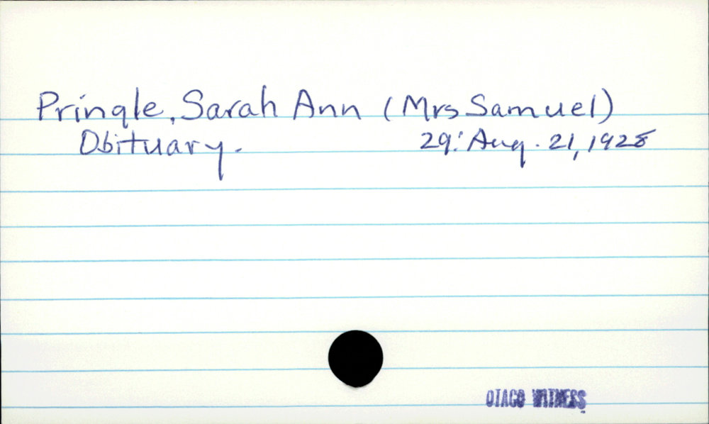 Dunedin Public Libraries (25th Jan 2022). Pringle, Sarah Ann (Mrs Samuel). In Website Dunedin Public Libraries. Retrieved 4th Apr 2026 10:50, from https://dunedin.recollect.co.nz/nodes/view/57375