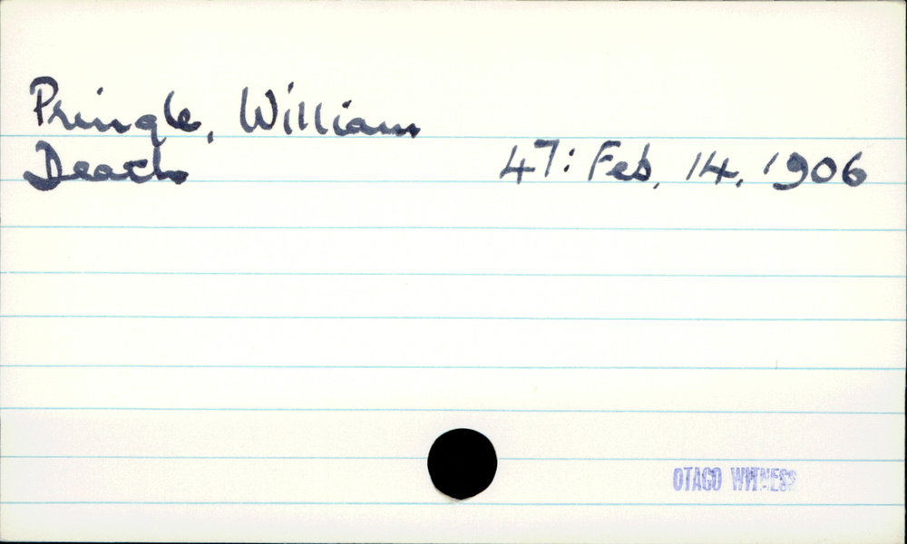 Dunedin Public Libraries (25th Jan 2022). Pringle, William. In Website Dunedin Public Libraries. Retrieved 4th Apr 2026 10:50, from https://dunedin.recollect.co.nz/nodes/view/57387