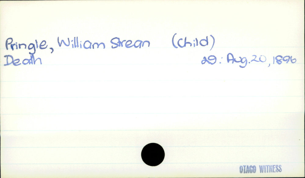 Dunedin Public Libraries (25th Jan 2022). Pringle, William Strean (Child). In Website Dunedin Public Libraries. Retrieved 4th Apr 2026 10:50, from https://dunedin.recollect.co.nz/nodes/view/57389