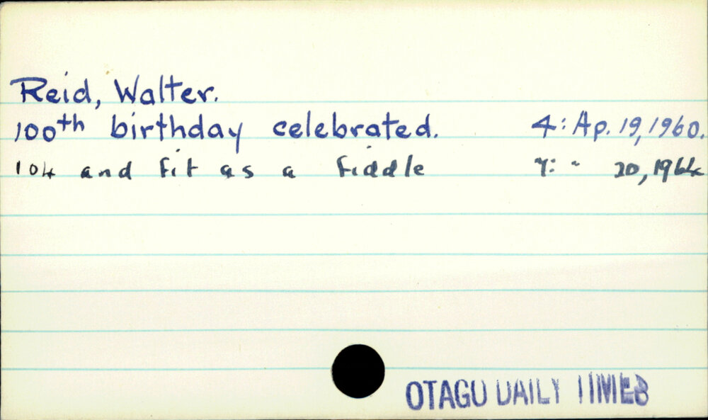 Dunedin Public Libraries (11th Apr 2022). Reid, Walter. In Website Dunedin Public Libraries. Retrieved 22nd Apr 2026 06:00, from https://dunedin.recollect.co.nz/nodes/view/62300