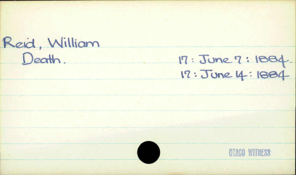 Dunedin Public Libraries (11th Apr 2022). Reid, William. In Website Dunedin Public Libraries. Retrieved 22nd Apr 2026 06:01, from https://dunedin.recollect.co.nz/nodes/view/62302