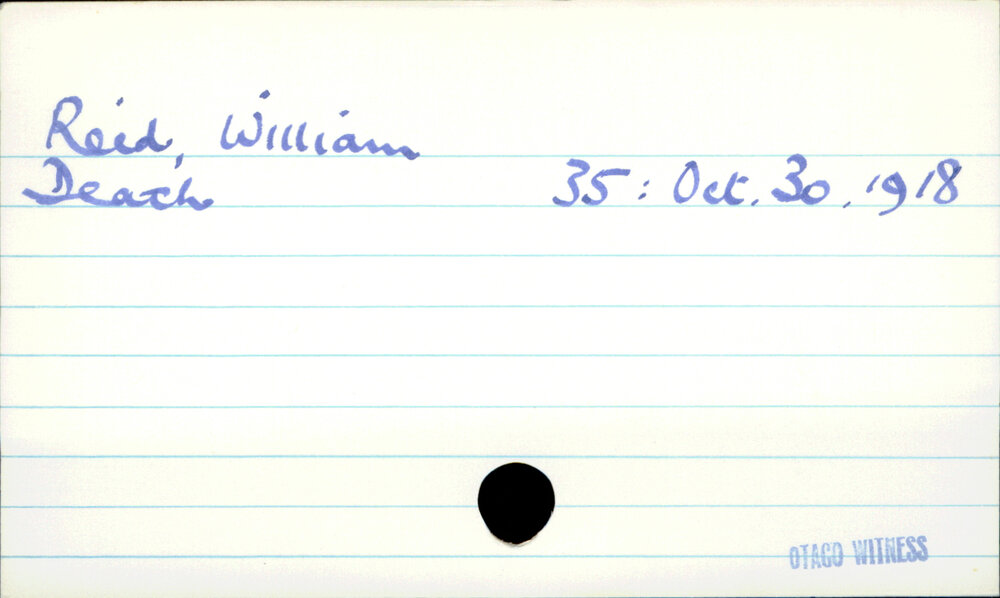 Dunedin Public Libraries (11th Apr 2022). Reid, William. In Website Dunedin Public Libraries. Retrieved 22nd Apr 2026 06:01, from https://dunedin.recollect.co.nz/nodes/view/62308