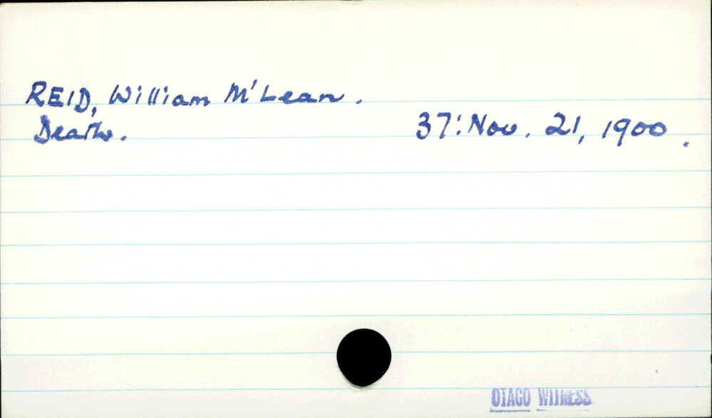 Dunedin Public Libraries (12th Apr 2022). Reid, William McLean. In Website Dunedin Public Libraries. Retrieved 22nd Apr 2026 06:00, from https://dunedin.recollect.co.nz/nodes/view/62312