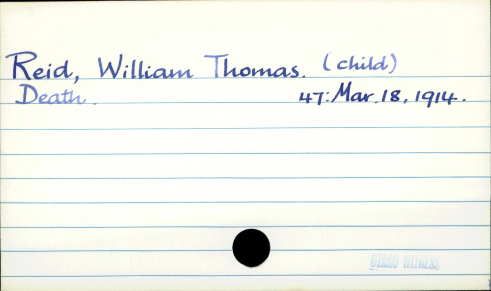 Dunedin Public Libraries (11th Apr 2022). Reid, William Thomas (child). In Website Dunedin Public Libraries. Retrieved 22nd Apr 2026 06:01, from https://dunedin.recollect.co.nz/nodes/view/62313