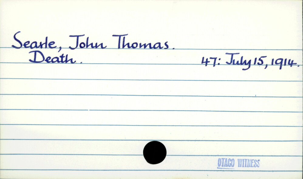 Dunedin Public Libraries (18th Jul 2022). Searle, John Thomas. In Website Dunedin Public Libraries. Retrieved 6th Apr 2026 03:07, from https://dunedin.recollect.co.nz/nodes/view/70902