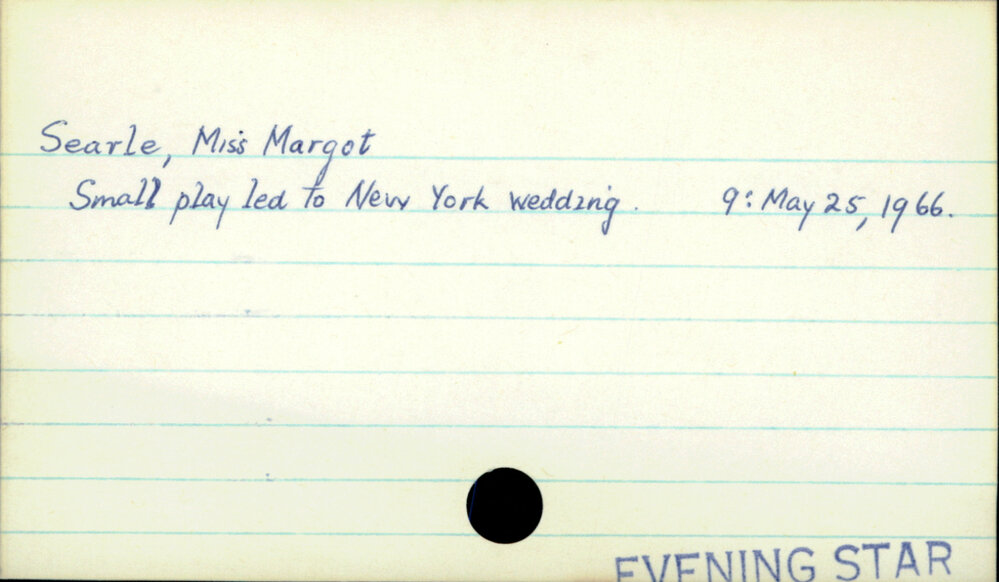 Dunedin Public Libraries (18th Jul 2022). Searle, Miss Margot. In Website Dunedin Public Libraries. Retrieved 6th Apr 2026 03:08, from https://dunedin.recollect.co.nz/nodes/view/70905
