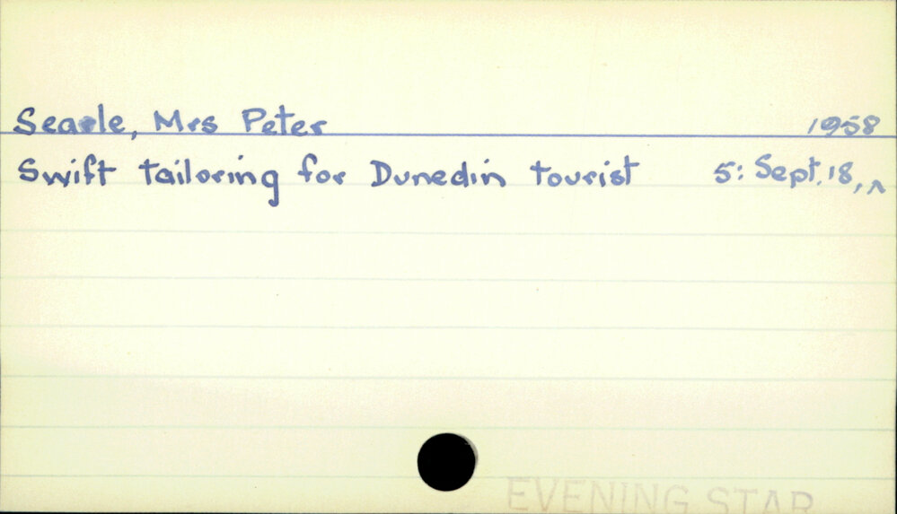 Dunedin Public Libraries (18th Jul 2022). Searle, Mrs Peter. In Website Dunedin Public Libraries. Retrieved 6th Apr 2026 03:09, from https://dunedin.recollect.co.nz/nodes/view/70910