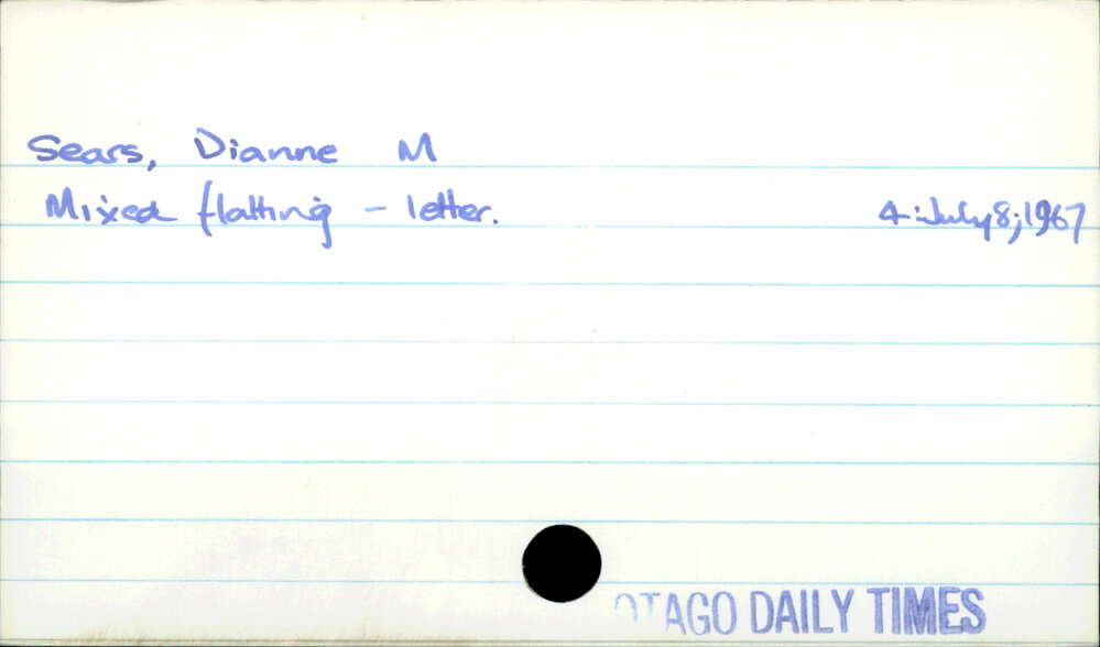 Dunedin Public Libraries (18th Jul 2022). Sears, Dianne M. In Website Dunedin Public Libraries. Retrieved 6th Apr 2026 03:08, from https://dunedin.recollect.co.nz/nodes/view/70918