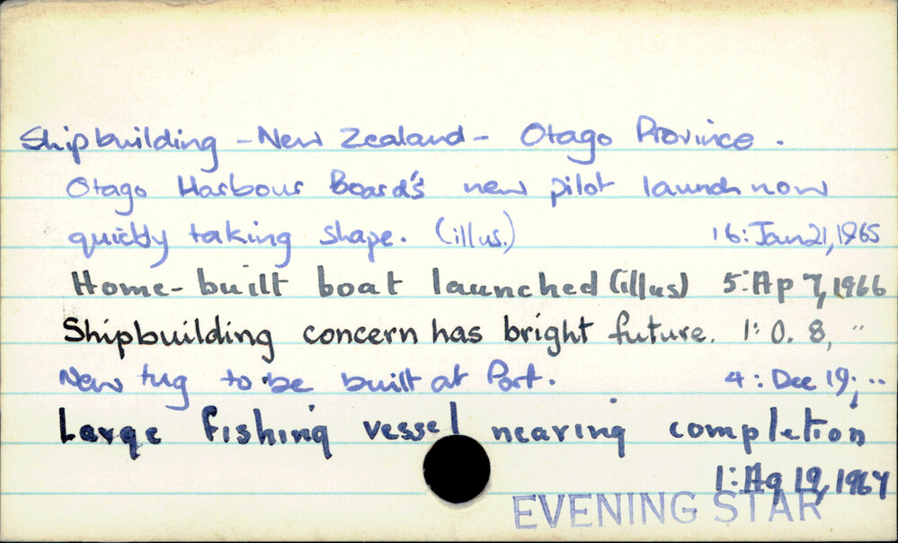 Dunedin Public Libraries (19th Sep 2022). Shipbuilding - New Zealand - Otago Province . In Website Dunedin Public Libraries. Retrieved 4th Apr 2026 10:50, from https://dunedin.recollect.co.nz/nodes/view/72584