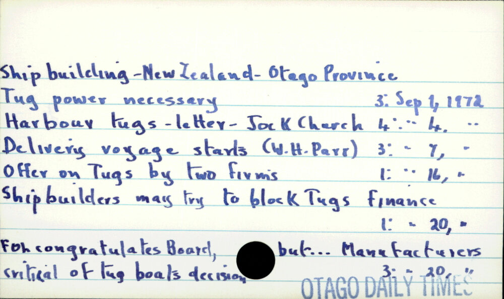 Dunedin Public Libraries (10th Aug 2022). Shipbuilding - New Zealand - Otago Province . In Website Dunedin Public Libraries. Retrieved 4th Apr 2026 10:50, from https://dunedin.recollect.co.nz/nodes/view/72592