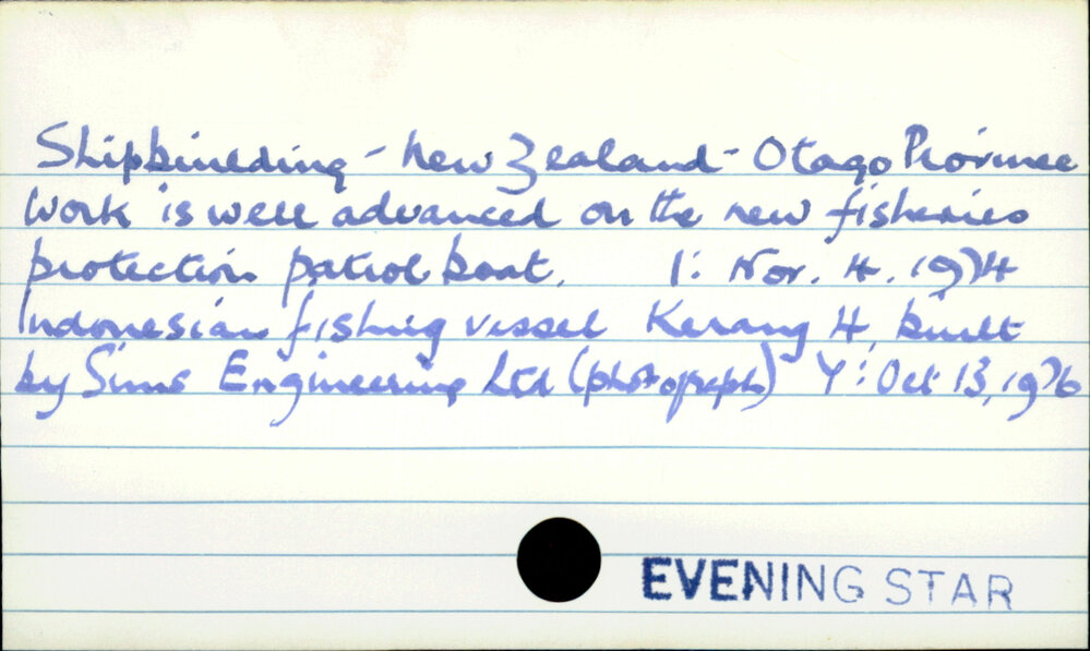 Dunedin Public Libraries (14th Sep 2022). Shipbuilding - New Zealand - Otago Province . In Website Dunedin Public Libraries. Retrieved 4th Apr 2026 10:50, from https://dunedin.recollect.co.nz/nodes/view/72596