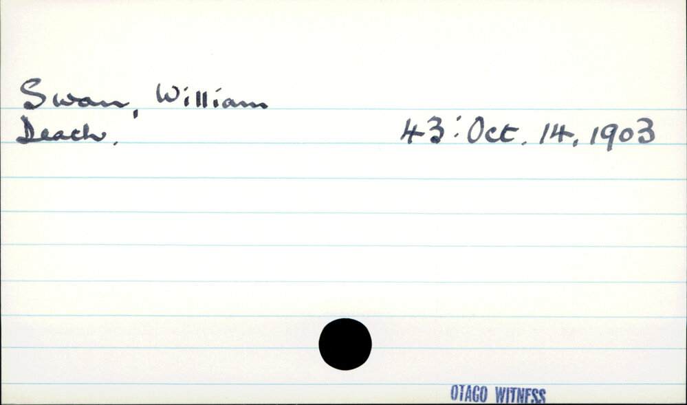 Dunedin Public Libraries (12th Dec 2022). Swan, William. In Website Dunedin Public Libraries. Retrieved 6th Apr 2026 05:05, from https://dunedin.recollect.co.nz/nodes/view/82517