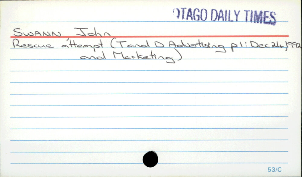 Dunedin Public Libraries (4th Jan 2023). SWANN, John. In Website Dunedin Public Libraries. Retrieved 6th Apr 2026 05:04, from https://dunedin.recollect.co.nz/nodes/view/82526