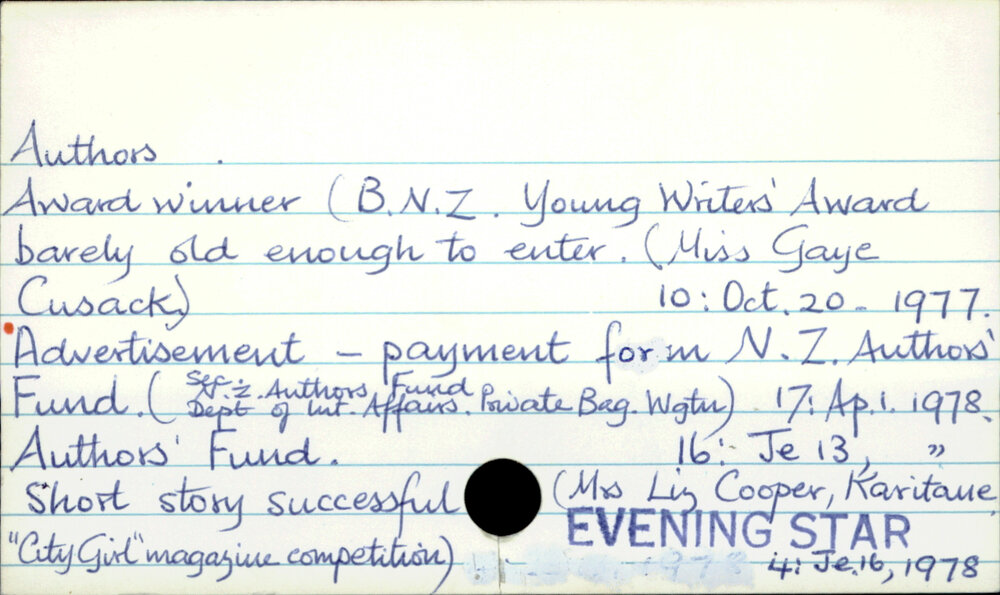 Dunedin Public Libraries (25th Sep 2018). Authors . In Website Dunedin Public Libraries. Retrieved 2nd Apr 2026 17:56, from https://dunedin.recollect.co.nz/nodes/view/8377