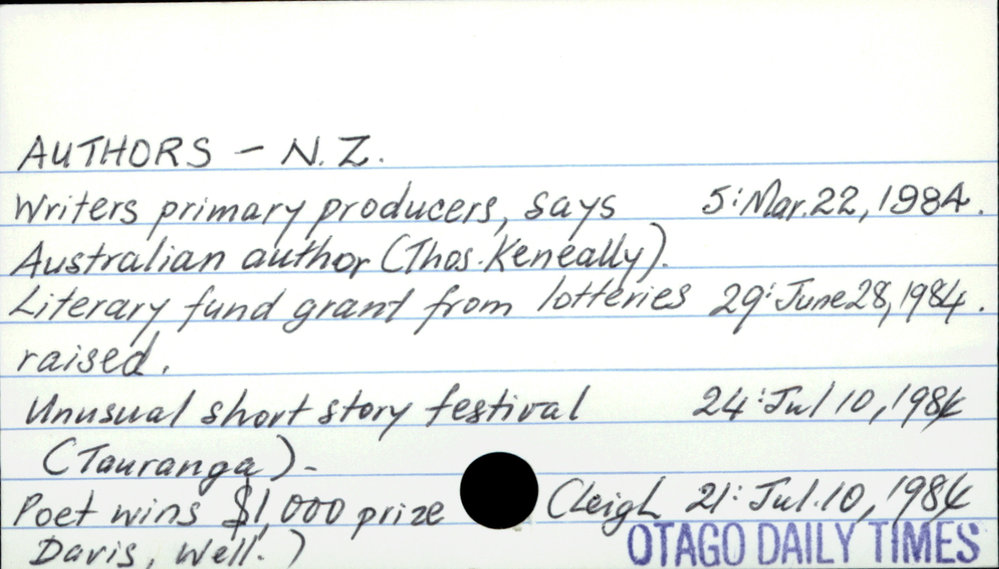 Dunedin Public Libraries (25th Sep 2018). AUTHORS - N. Z. . In Website Dunedin Public Libraries. Retrieved 2nd Apr 2026 17:45, from https://dunedin.recollect.co.nz/nodes/view/8389