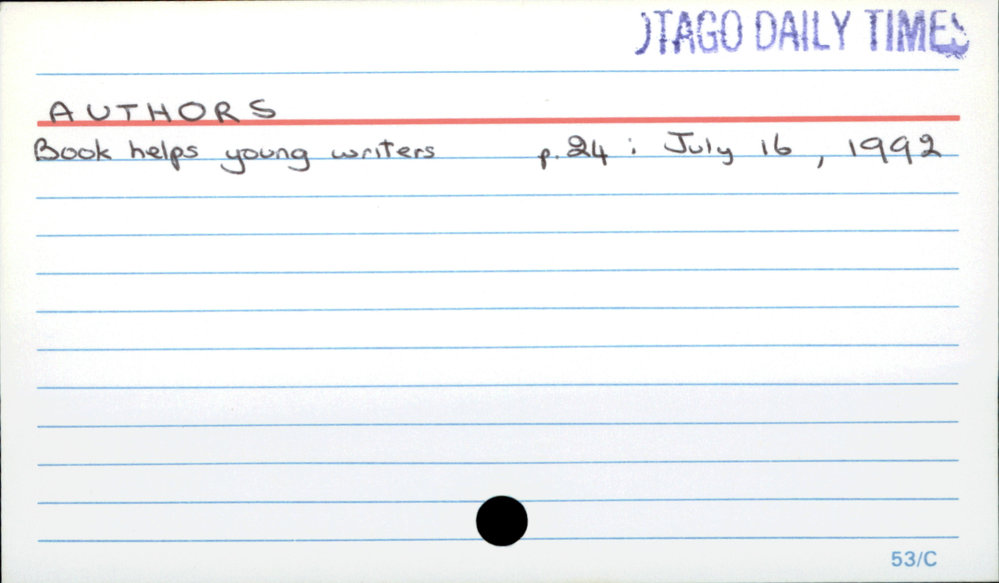 Dunedin Public Libraries (25th Sep 2018). AUTHORS . In Website Dunedin Public Libraries. Retrieved 2nd Apr 2026 17:56, from https://dunedin.recollect.co.nz/nodes/view/8395
