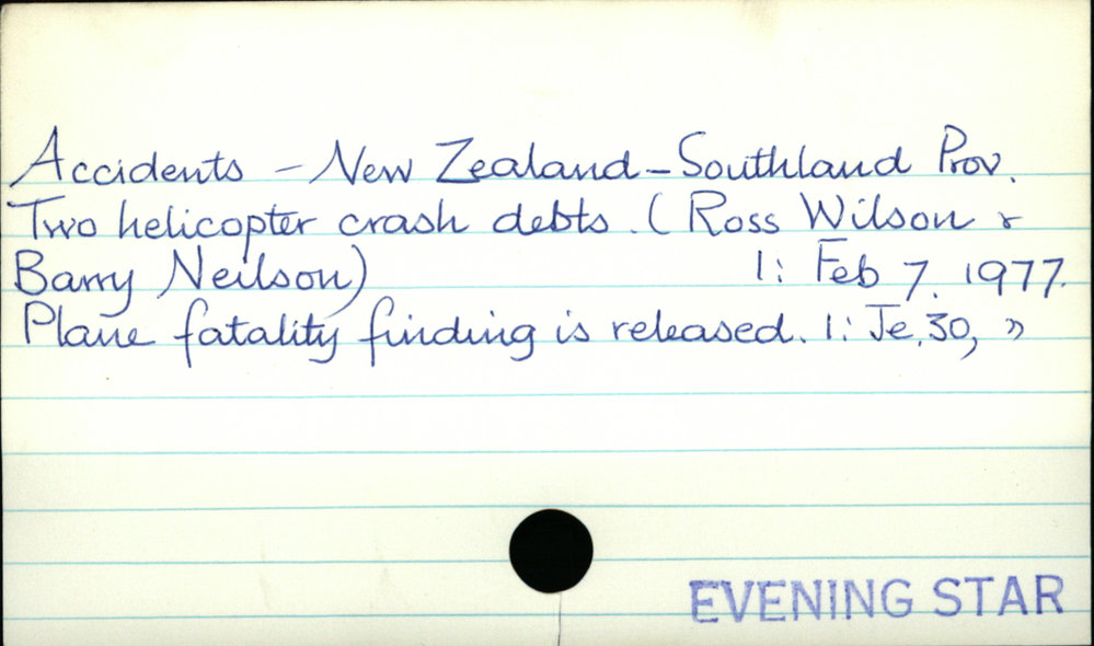 Dunedin Public Libraries (19th May 2018). Accidents - New Zealand - Southland Province. In Website Dunedin Public Libraries. Retrieved 4th Apr 2026 09:18, from https://dunedin.recollect.co.nz/nodes/view/875