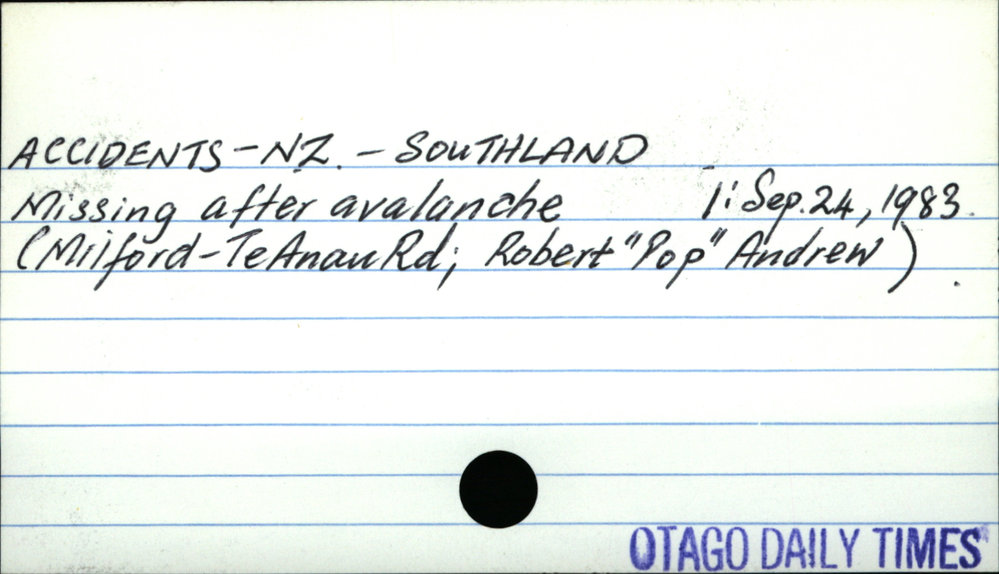 Dunedin Public Libraries (19th May 2018). Accidents - New Zealand - Southland. In Website Dunedin Public Libraries. Retrieved 4th Apr 2026 09:18, from https://dunedin.recollect.co.nz/nodes/view/878