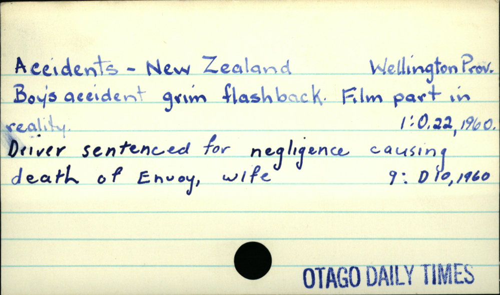 Dunedin Public Libraries (18th May 2018). Accidents - New Zealand Wellington Prov.. In Website Dunedin Public Libraries. Retrieved 4th Apr 2026 09:19, from https://dunedin.recollect.co.nz/nodes/view/886