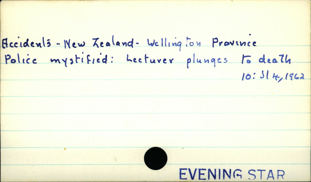 Dunedin Public Libraries (18th May 2018). Accidents - New Zealand - Wellington Province . In Website Dunedin Public Libraries. Retrieved 4th Apr 2026 09:18, from https://dunedin.recollect.co.nz/nodes/view/887