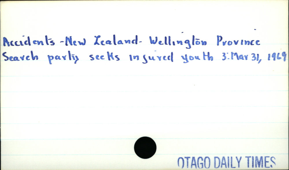 Dunedin Public Libraries (18th May 2018). Accidents - New Zealand - Wellington Province . In Website Dunedin Public Libraries. Retrieved 4th Apr 2026 09:18, from https://dunedin.recollect.co.nz/nodes/view/889