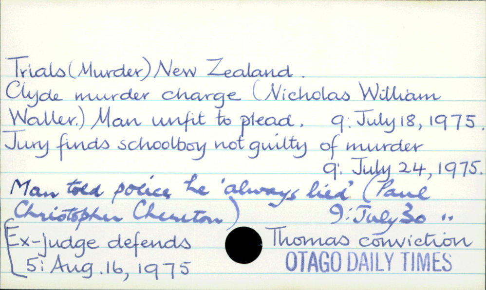 Dunedin Public Libraries (23rd Apr 2023). Trials (murder) New Zealand. In Website Dunedin Public Libraries. Retrieved 4th Apr 2026 22:23, from https://dunedin.recollect.co.nz/nodes/view/89149