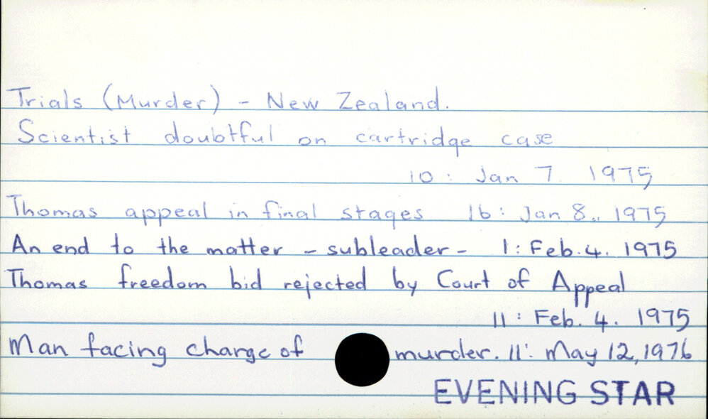 Dunedin Public Libraries (21st Mar 2023). Trials (Murder) - New Zealand. In Website Dunedin Public Libraries. Retrieved 4th Apr 2026 22:23, from https://dunedin.recollect.co.nz/nodes/view/89150