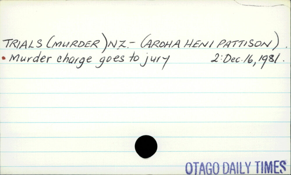 Dunedin Public Libraries (22nd Mar 2023). Trials (Murder) - New Zealand. In Website Dunedin Public Libraries. Retrieved 4th Apr 2026 22:23, from https://dunedin.recollect.co.nz/nodes/view/89163
