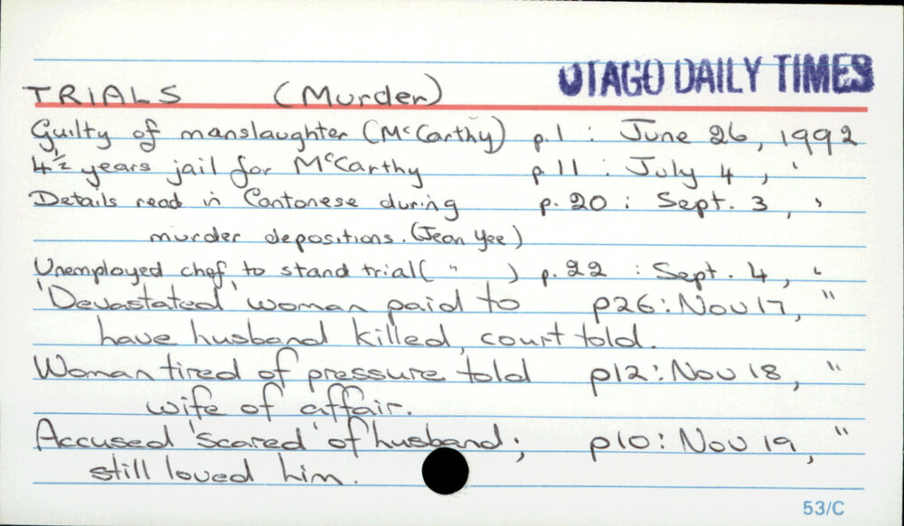 Dunedin Public Libraries (22nd Mar 2023). Trials (Murder) - New Zealand. In Website Dunedin Public Libraries. Retrieved 4th Apr 2026 22:23, from https://dunedin.recollect.co.nz/nodes/view/89170