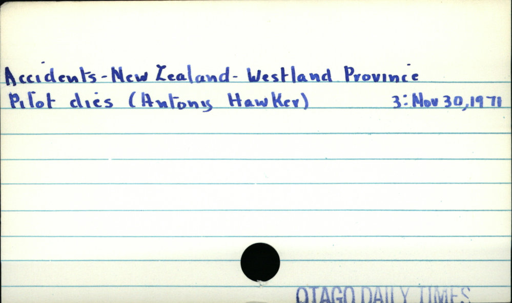 Dunedin Public Libraries (17th May 2018). Accidents - New Zealand - Westland Province . In Website Dunedin Public Libraries. Retrieved 4th Apr 2026 09:18, from https://dunedin.recollect.co.nz/nodes/view/896