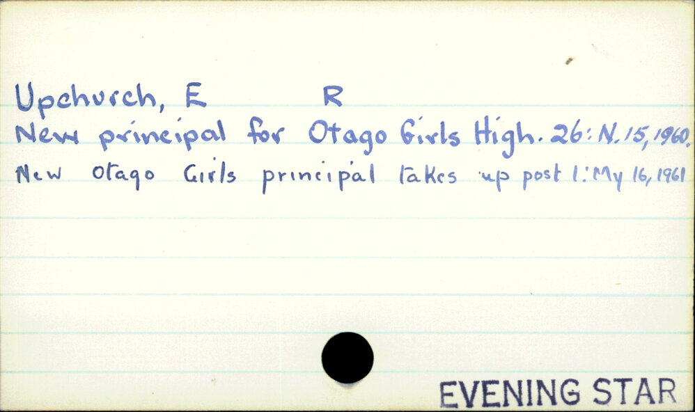 Dunedin Public Libraries (5th Apr 2023). Upchurch, E.R.. In Website Dunedin Public Libraries. Retrieved 24th Apr 2026 03:19, from https://dunedin.recollect.co.nz/nodes/view/90887