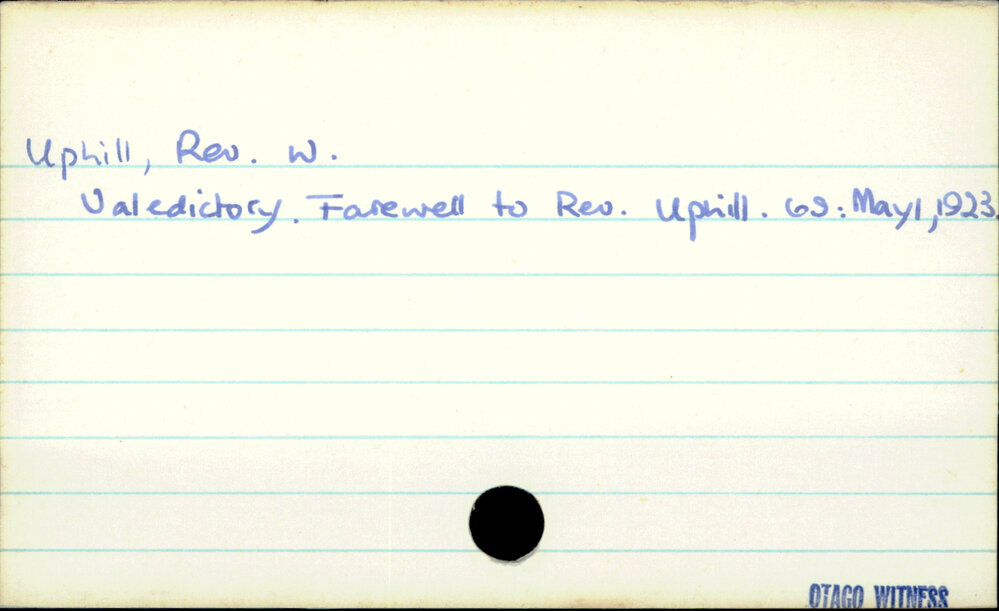 Dunedin Public Libraries (5th Apr 2023). Uphill, Rev. W.. In Website Dunedin Public Libraries. Retrieved 24th Apr 2026 03:19, from https://dunedin.recollect.co.nz/nodes/view/90898