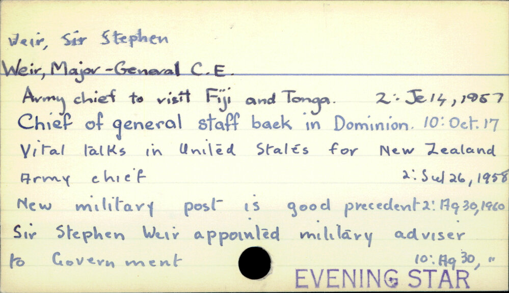 Dunedin Public Libraries (3rd Jun 2023). Weir, Sir Stephen, Major-General C.E.. In Website Dunedin Public Libraries. Retrieved 5th Apr 2026 21:45, from https://dunedin.recollect.co.nz/nodes/view/95638