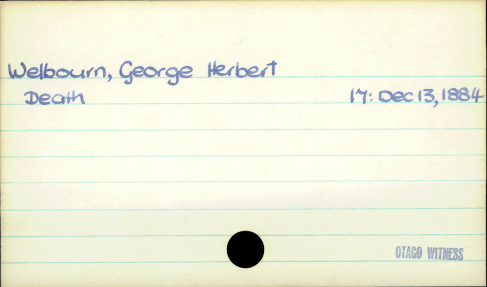 Dunedin Public Libraries (18th May 2023). Welbourn, George Herbert . In Website Dunedin Public Libraries. Retrieved 5th Apr 2026 21:45, from https://dunedin.recollect.co.nz/nodes/view/95660